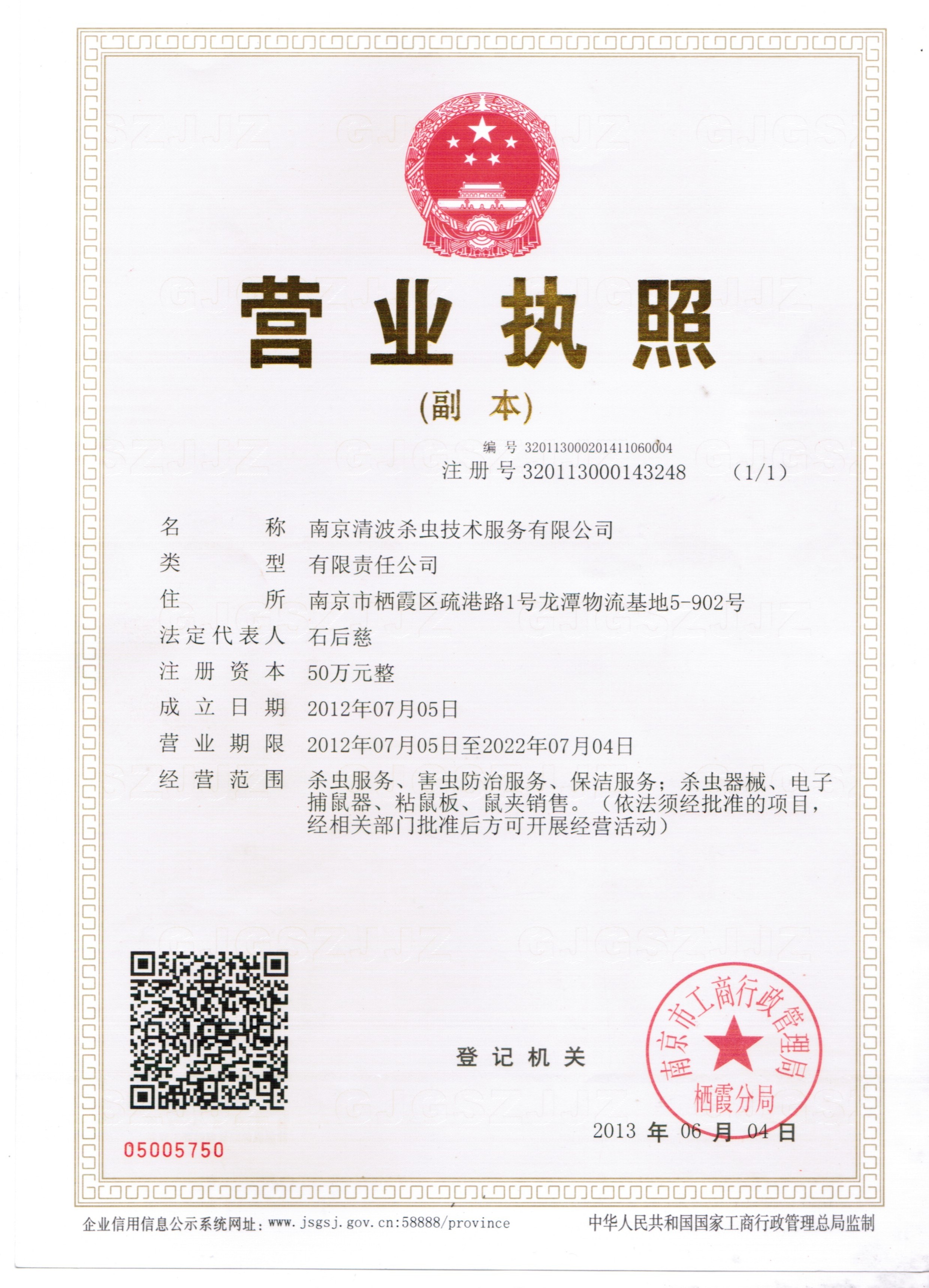 南京清波殺蟲技術服務有限公司是一家專業從事;有害生物防治、蟲害控制管理、衛生防疫消毒、環境綠化工程與養護服務、清潔服務、殺蟲藥品和器械銷售及售后服務。   我們的服務項目:消滅老鼠、蟑螂、蚊子、蒼蠅、白蟻、跳蚤、臭蟲等衛生蟲害的防制工作及環境消毒。特別是在殺滅德國小蠊及老鼠防治方面有著無可比擬的技術優勢。   我們的服務對象:賓館、酒店、超市、商場、商業大樓、餐廳、食品加工廠、醫院、各類廠區、集裝箱、船泊、鐵路車廂、娛樂場所、學校、銀行、航空及公共外環境等病媒蟲害綜合防制業務。   我們的優勢:   1、專業:我公司擁有一支設備先進及專業的技術人員組成的消殺隊伍。具有豐富的理論知...